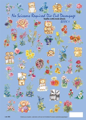 Decoupage Book 1 This book contains 14 sheets of Floral Decoupage, 4 sheets of Cute Character Decoupage, 2 sheets of Pop out captions, 5 sheets of vellum and 2 sheets of card stock. Simply press out the pieces and layer them according to the numbers using 3D glue or foam tabs.