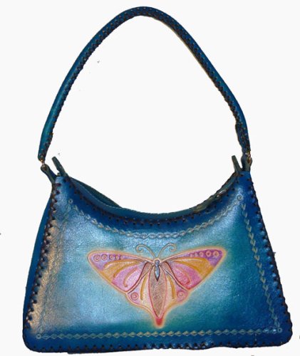 butterfly crafts : Special Craft, Designer Leather Handbag, Butterfly Embossed. Unique & Adorable for Your Lover or You Own. (Blue) Reviews