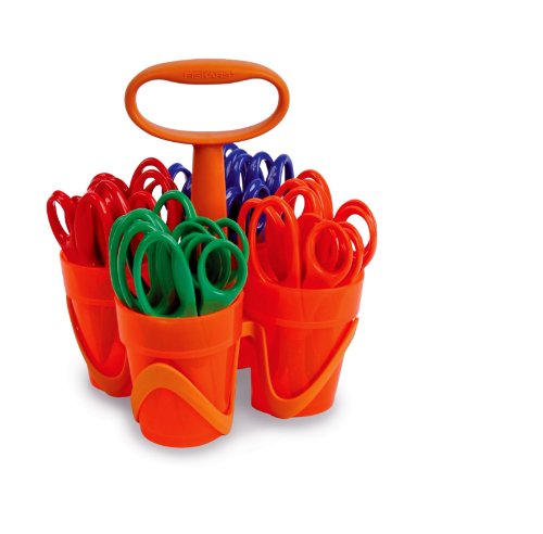Fiskars for kids scissors are recommended by more teachers than any other brand of scissors. The blades are engineered to cut whatever materials the class is using - providing a frustration-free, successful cutting experience for young ones. The handles are designed to give kids the most comfort and control with every cut. The ergonomic design of the handle helps teach proper cutting form. Quality, design and safety are all reasons that teachers nationwide use Fiskars in their classrooms. 24 Pack with Art Caddy has assorted colors and is ideal for supplying a medium-sized classroom.